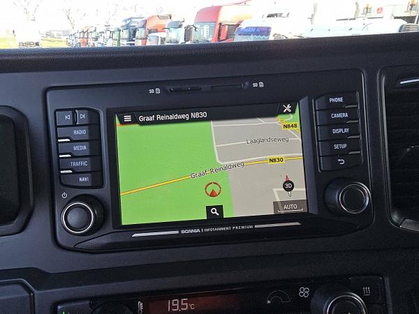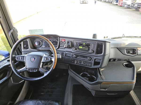 Aantal Assen: 2, Configuratie: 4x2, Eigen gewicht: 8328 kg, Totaalgewicht: 19500 kg, Diesel inhoud totaal: 700 liter, Schotelhoogte: 122 cm, Schotel type: Fixed, Aantal sperren: 1, Lichtmetalen velgen, Vering type: luchtvering, Soort cabine: Highline, Cruise control, Tachograaf, Digitale tachograaf, Airconditioning, Stand airco, Standkachel, Elektrische ramen, Elektrische spiegels, Radio/cassette, GPS navigatie, Kleur: Blauw, Metallic, Verwarmde spiegels, Soort lampen: Led, Laneassist, Climatecontrol, Stoelverwarming, Bluetooth, Motorvermogen: 368 Kw (493 Hp), Brandstof: diesel, Euro: 6, Soort versnellingsbak: Opti-cruise, Merk versnellingsbak: Scania, Versnellingen: 12, Extra remsysteem, Merk retarder: Scania, Stuurbekrachtiging, ABS (Anti Blokkeer Systeem), ASR (Anti Slip Regeling), PTO, PTO soort: 2, Start accu, Pomp, Centrale vergrendeling, Stoelopstelling: 1+1, Stoelbekleding: leder, Stoel verstelling: Handmatig, NB FULL AIR / LEATHER / ALCOA'S / NIGHT AIRCO / KING OF THE ROAD