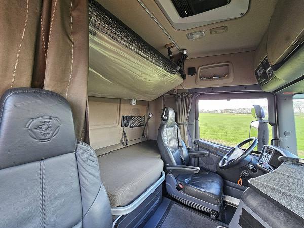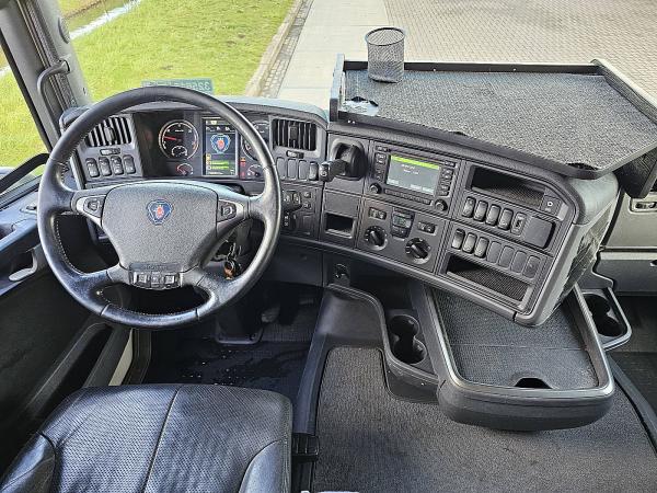 Aantal Assen: 2, Configuratie: 4x2, Eigen gewicht: 8518 kg, Totaalgewicht: 19000 kg, Diesel inhoud totaal: 750 liter, Schotelhoogte: 117 cm, Schotel type: Fixed, Aantal sperren: 1, Centrale smering, Vering type: luchtvering, Soort cabine: slaapcabine, Cruise control, Tachograaf, Digitale tachograaf, Airconditioning, Aantal airbags: 1, Stand airco, Standkachel, Elektrische ramen, Elektrische spiegels, Radio/cassette, GPS navigatie, Kleur: Wit, Verwarmde spiegels, Soort lampen: Halogeen, Laneassist, Climatecontrol, Stoelverwarming, Bluetooth, Motorvermogen: 331 Kw (444 Hp), Brandstof: diesel, Euro: 6, Soort versnellingsbak: Opti-cruise, Merk versnellingsbak: Scania, Versnellingen: 12, Extra remsysteem, Merk retarder: Scania, Stuurbekrachtiging, ABS (Anti Blokkeer Systeem), ASR (Anti Slip Regeling), PTO, Start accu, Centrale vergrendeling, Stoelopstelling: 1+1, Stoelbekleding: leder, Stoel verstelling: Handmatig