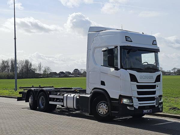 Aantal Assen: 3, Configuratie: 6x2, Diesel inhoud totaal: 100 liter, 2e dieseltank, Aanhangwagen kopp., Dikte koppelingspen: 40 DIN, Schotel type: Fixed, Aantal sperren: 1, Vering type: luchtvering, Soort cabine: Topline, Cruise control, Tachograaf, Digitale tachograaf, Airconditioning, Stand airco, Standkachel, Elektrische ramen, Elektrische spiegels, Radio/cassette, Kleur: Wit, Verwarmde spiegels, Soort lampen: Led, Laneassist, Climatecontrol, Stoelverwarming, Bluetooth, Brandstof: diesel, Euro: 6, Soort versnellingsbak: Opti-cruise, Merk versnellingsbak: Scania, Versnellingen: 12, Koppelingspedaal, Extra remsysteem, Merk retarder: Retarder, Stuurbekrachtiging, ABS (Anti Blokkeer Systeem), ASR (Anti Slip Regeling), PTO soort: 1, Start accu, Twistlocks: 1x20, Lengte systeem: 80 cm, Centrale vergrendeling, Stoelopstelling: 1+1, Stoelbekleding: stof, Stoel verstelling: Handmatig