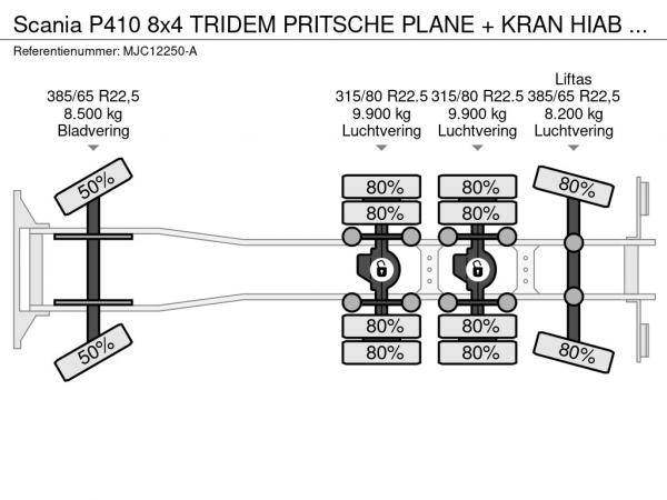 SCANIA (2017) Scania P410 8x4 TRIDEM PRITSCHE PLANE + KRAN HIAB 244 EP-4 HIDUO - RETARDER - LIFT + STEERING AXLE - *327.000km* - RADIO MJC12250-A