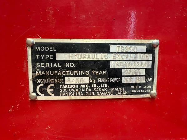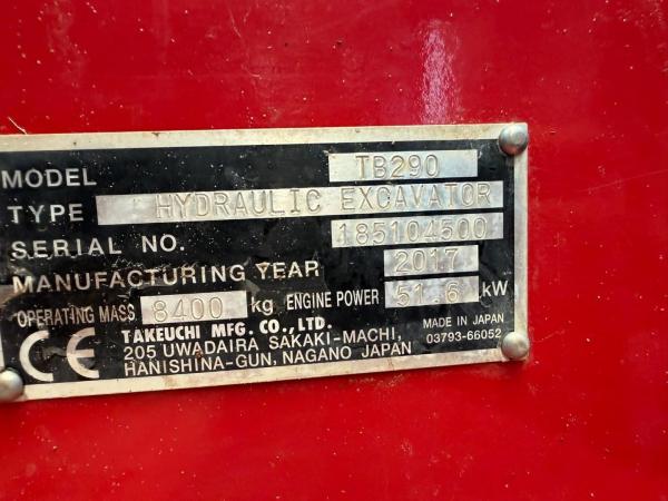 TAKEUCHI (2017) Takeuchi TB290 *3075h* + SORTEERGRIJPER / SORTING GRAB + 6 BUCKETS / LÖFFEL - A/C - CAMERA - CE - BE MACHINE MJC111179