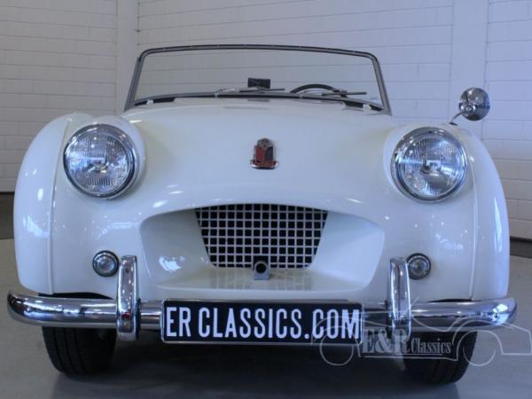 This Triumph TR2 was originally delivered in France in 1954. The early TR series were recognizable by the longer doors and the car hood with release cable. This Triumph was fully restored by its former owner and provided with beautiful new paint. The interior has red leather and is in fabulous condition. Even the dashboard with chrome clocks is refurbished with leather. The original 1991 CC engine has 91 HP and drives great. The Triumph TR2 is a rare classic car and a very popular collector’s item.