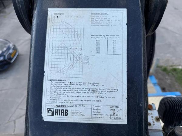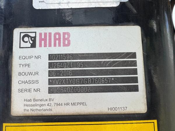 Kraan: HIAB J2640ZT 95, bouwjaar 2016, achter op het chassis