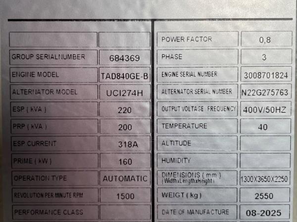 | Особенности | TAD840GE - 220 kVA Generator - DPX-18875 |