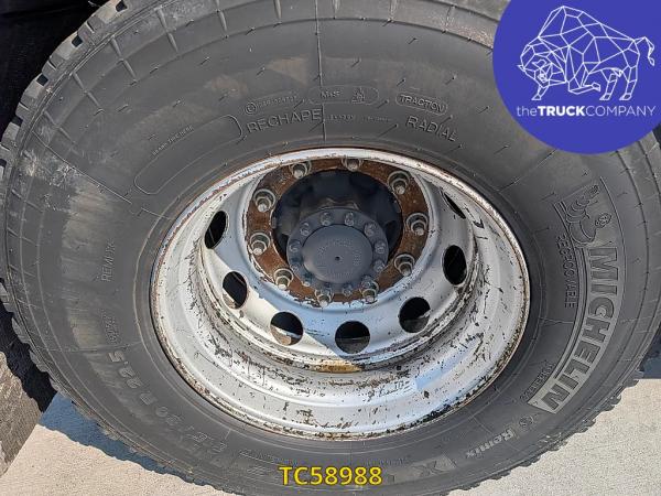 Achteras: Bandenmaat: 315/80 R22.5; Dubbellucht; Bandenprofiel linksbinnen: 6 mm; Bandenprofiel linksbuiten: 4 mm; Bandenprofiel rechtsbinnen: 6 mm; Bandenprofiel rechtsbuiten: 6 mm; Vering: luchtvering