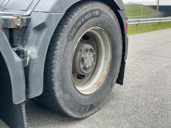 The truck is equipped with a 16-liter Volvo D16 engine (552 kW / 750 hp), delivering approximately 3550 Nm of torque. It comes with air suspension on front and rear axles, ESP, ABS, and PTO.