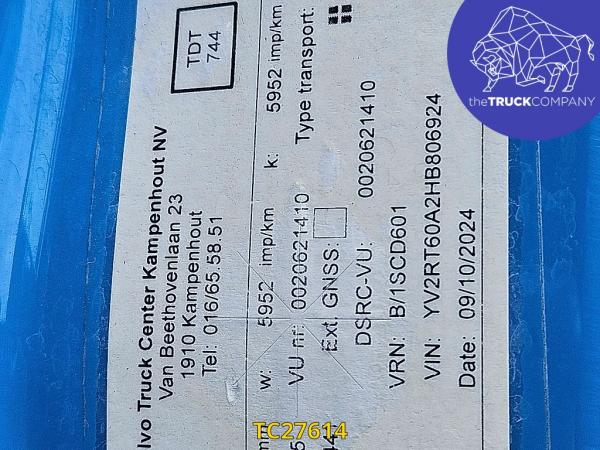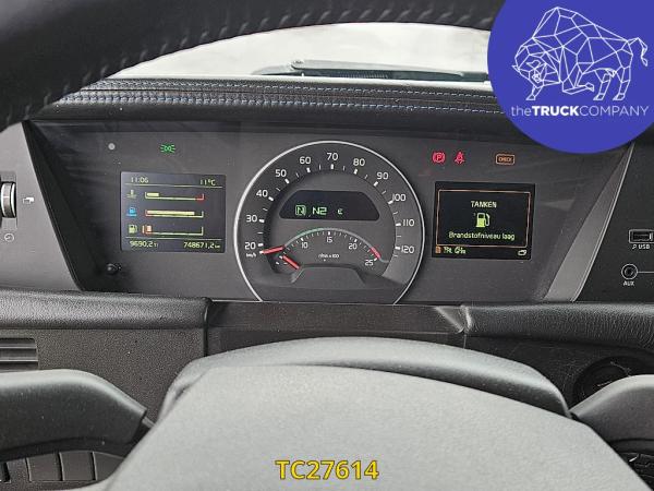 Achteras: Bandenmaat: 315/70 R22.5; Dubbellucht; Bandenprofiel linksbinnen: 7 mm; Bandenprofiel linksbuiten: 6 mm; Bandenprofiel rechtsbinnen: 4 mm; Bandenprofiel rechtsbuiten: 4 mm